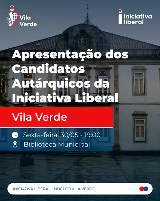 A Iniciativa Liberal de Vila Verde apresenta oficialmente os seus candidatos autárquicos na próxima sexta-feira, dia 30 de maio, às 19h, na Biblioteca Municipal de Vila Verde.