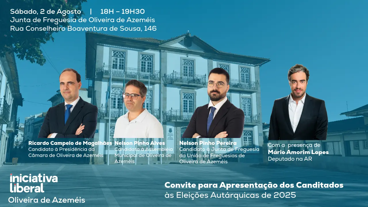 📅 No próximo Sábado, 2 de Agosto, às 18h, na Junta de Freguesia de Oliveira de Azeméis, a Iniciativa Liberal Oliveirense vai apresentar a sua lista completa às Autárquicas 2025.