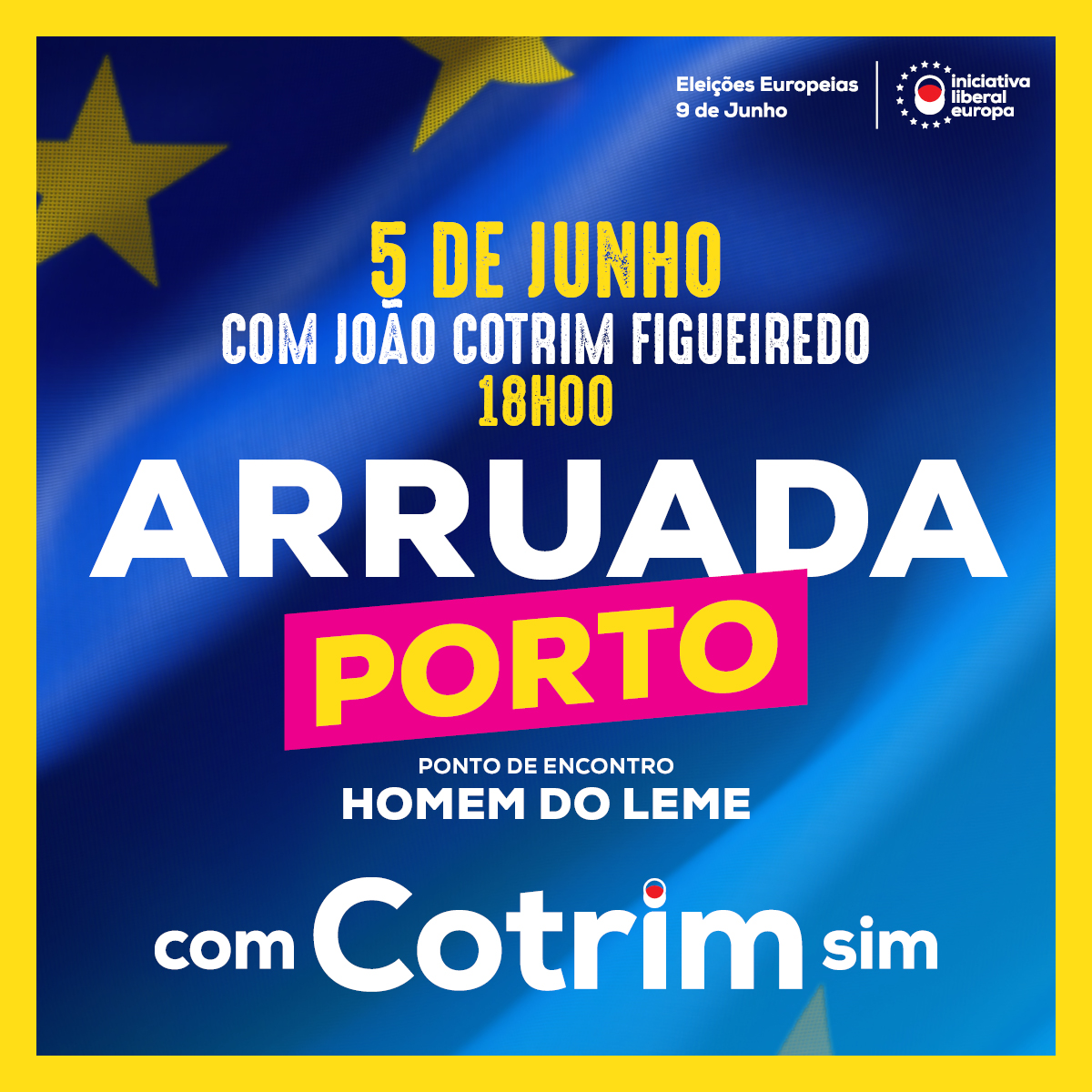 Vem ter connosco e participar na arruada, que terá como ponto de encontro a Praia do Homem do Leme. Podes contar com a presença de João Cotrim Figueiredo e de vários candidatos às eleições europeias.