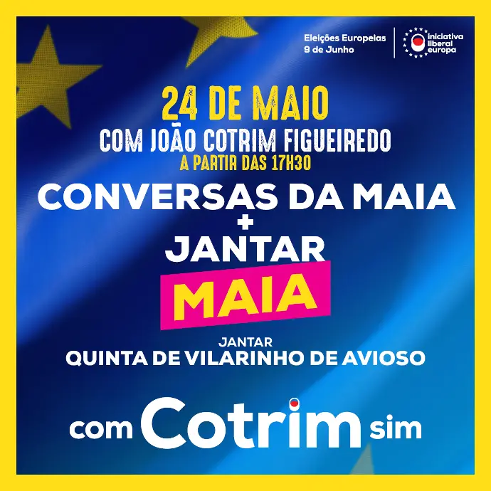 A campanha da Iniciativa Liberal para as eleições europeias chega à Maia nesta sexta-feira, dia 24 de maio. Estaremos na Universidade da Maia (UMAIA) às 17h30 para o evento 'Conversas na Maia', com a presença do nosso candidato ao Parlamento Europeu, João Cotrim Figueiredo.