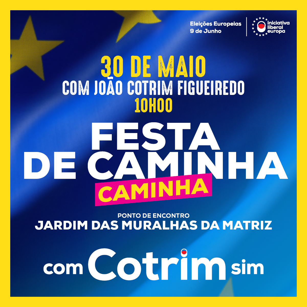 Vem fazer parte desta campanha já esta quinta feira, dia 30 de maio, na Festa de Caminha. Podes contar com a presença do nosso candidato ao Parlamento Europeu, João Cotrim Figueiredo.