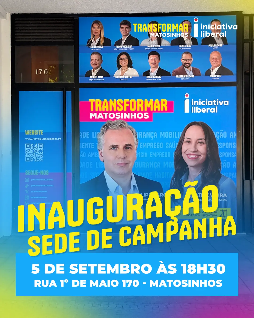 No próximo dia 5 de setembro, às 18h30, abrimos oficialmente as portas da nossa sede de campanha. Este será o ponto de partida para transformar Matosinhos nas Autárquicas 2025.