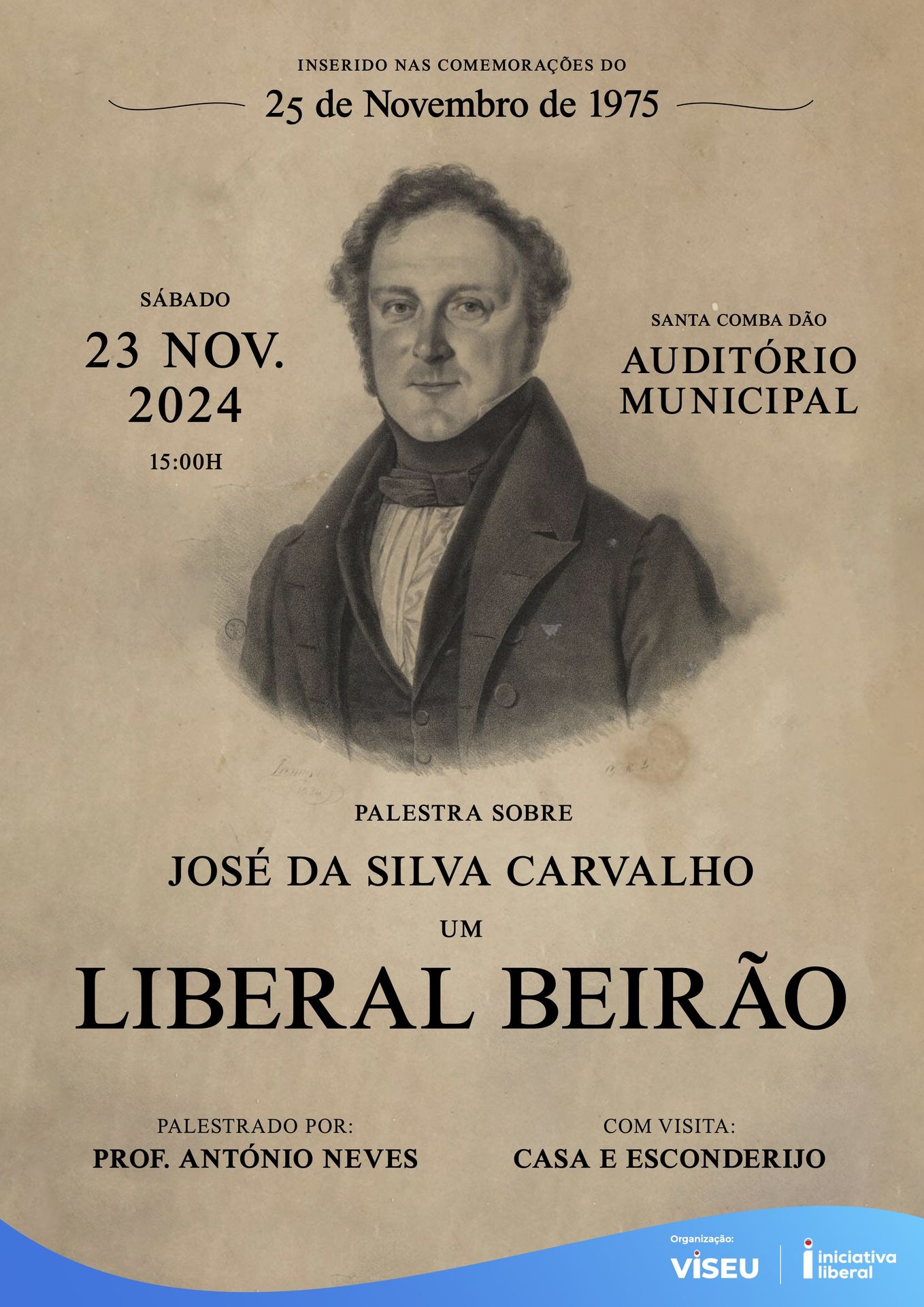Esta Palestra dedicada ao ilustre liberal santacombadense, irá realizar-se no próximo dia 23 de novembro, pelas 15h00, no Auditório Municipal de Santa Comba Dão, tendo como orador o Prof. António Neves.